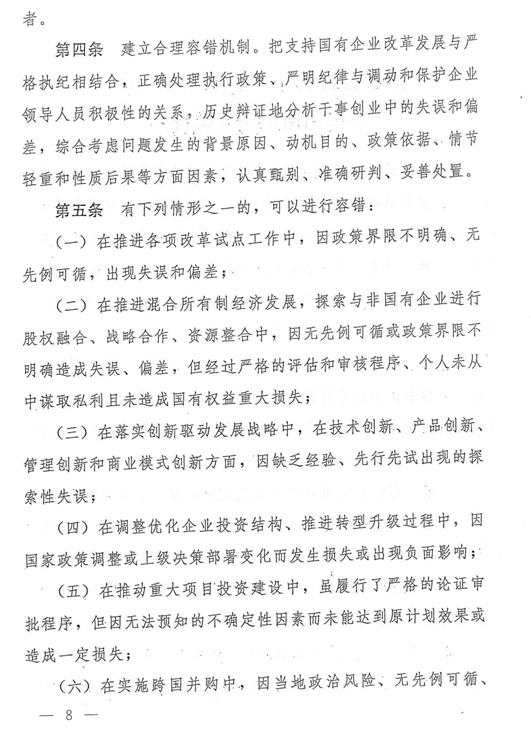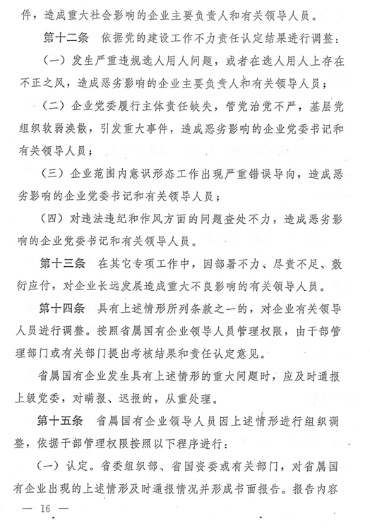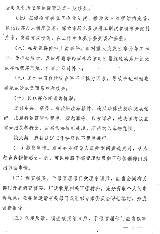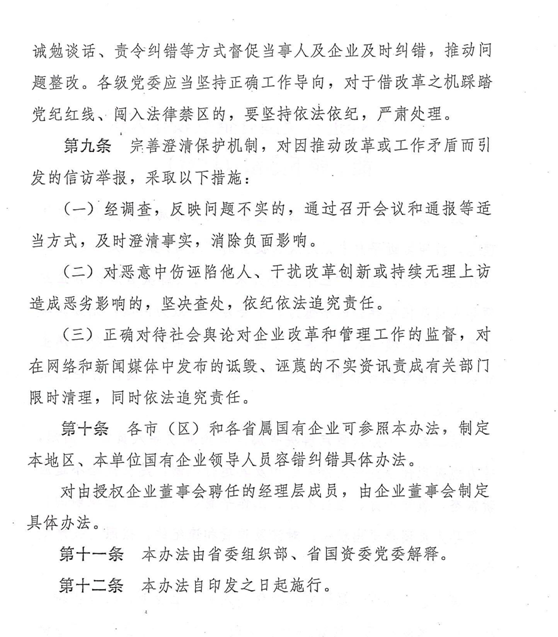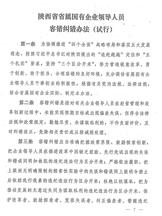 陜西省省屬國有企業領導人員鼓勵激勵、容錯糾錯、能上能下辦法
